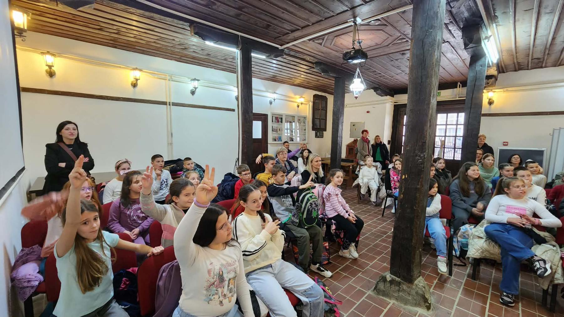 Као своје искрене сараднике, од којих су многи наши чланови, са жељом да присуствују овом догађају, позвали смо ученике Основне школе „Синиша Јанић“, на шта су се они радо одазвали. Узраста од првог до четвртог разреда, били су не само пажљиви слушаоци већ су са песникињом певали, разговарали, допуњавали њене стихове својим речима, одговарали на њена питања.